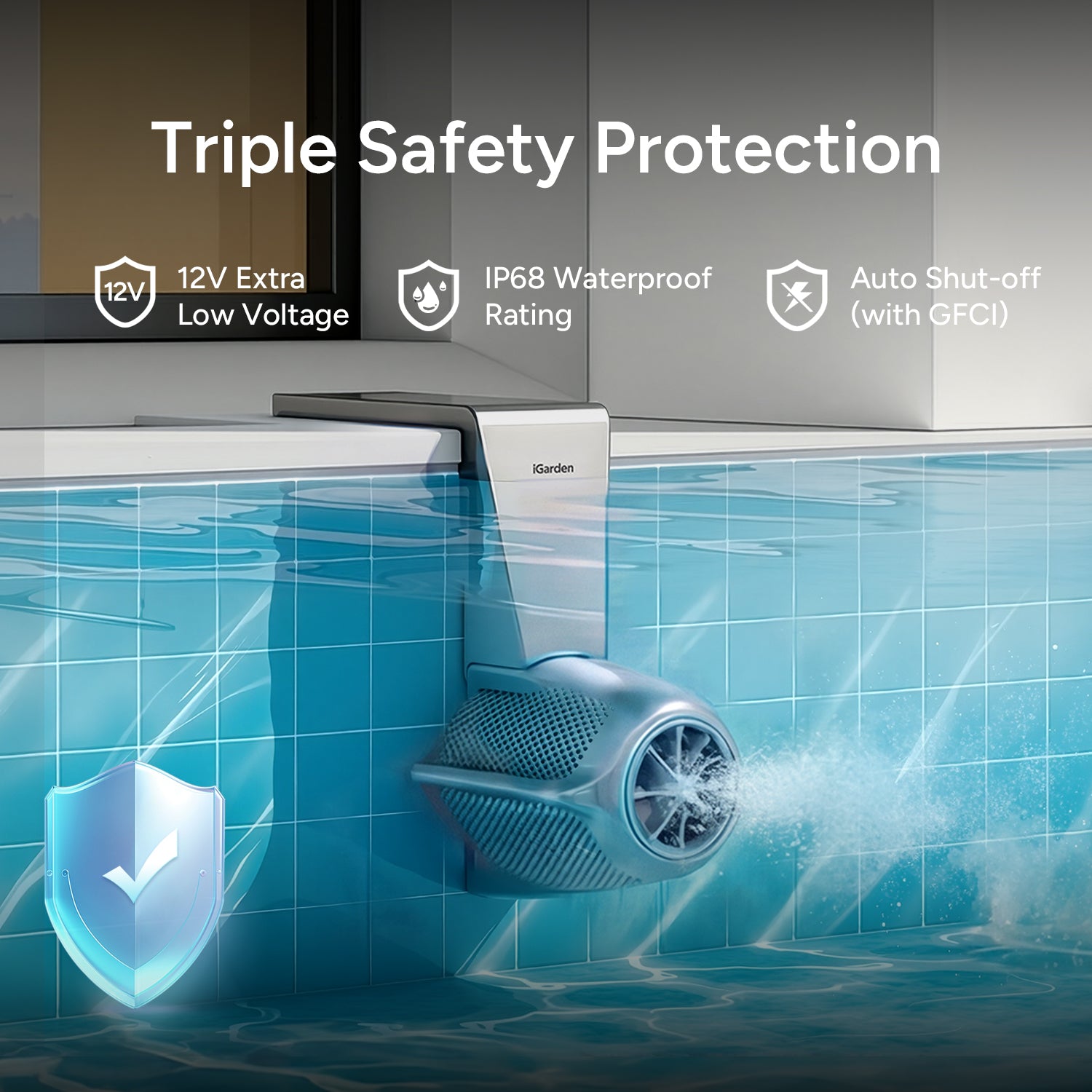 To ensure safety, the iGarden Swim Jet feature multiple layers of protection.